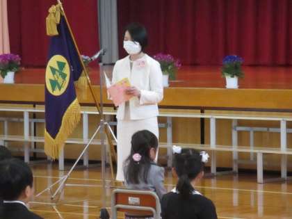 瞳をきらきらと輝かせて、52人の元気な杉の子が入学しました。2〜6年生のお兄さん、お姉さん、そして先生たちは、1年生のみなさんと過ごす学校生活を楽しみにしています。明日から、元気に登校してくるのを待っています。