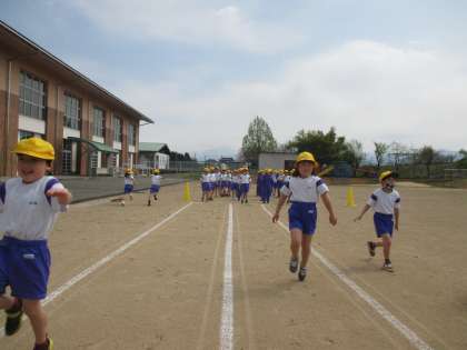1年生 50m走 公開日 2021/04/08 更新日 2021/04/08 1年生 久しぶりの体育で、ウォーミングアップをしてから、さっそく50m走を走りました。昨年よりタイムが早くなった子どもが多くいました。来月の運動会に向けて、これから練習をしていきます。