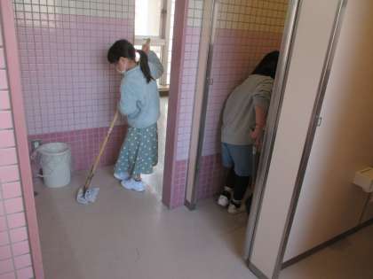2年生になり、清掃場所が増えましたが、友達と協力して丁寧に取り組んでいます。