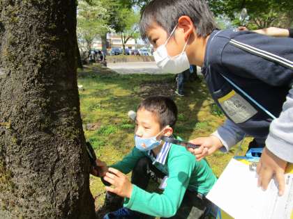今日は「動かせないもの」を虫眼鏡で観察しました。