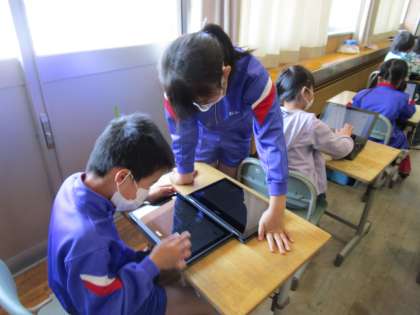 3年生 虫食い算 公開日 2021/04/22 更新日 2021/04/22 3年生 算数の学習で、かける数やかけられる数が隠された「虫食い算」の解き方を考えました。 その後は、タブレットを使ってペアで問題を出し合いました。