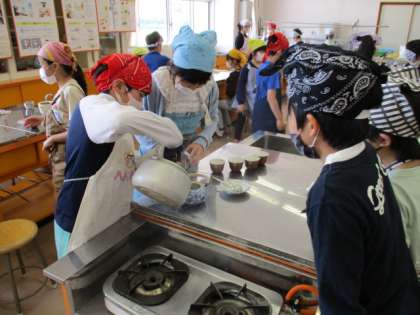 5年生 みんなでお茶を入れました 公開日 2021/04/26 更新日 2021/04/26 5年生 5年生は家庭科でお茶を入れる学習をしています。 今回はグループのみんなで協力してお茶を入れました。 自分たちで入れたお茶を飲んで、 「おいしい」「もう一杯飲みたい」 と笑顔で話す姿がたくさんみられました。