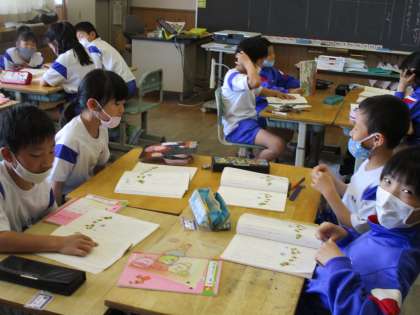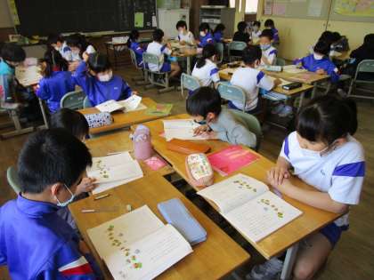 「きつつきの商売」を学習中です。 今日はグループごとに音読しました。 長いお話も、友達となら楽しく読めたようです。