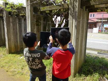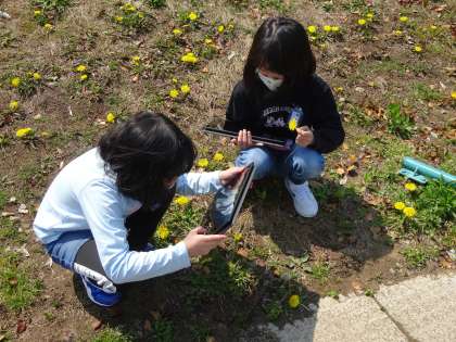 4年生 理科の学習 公開日 2021/04/26 更新日 2021/04/26 4年生 理科の学習では、校舎の外へ春を見つけに出かけました。春を見つけたら、クロームブックのカメラを使って撮影しました。何枚も撮影していました。どんどん使うことが上手になっていく子供たちです。