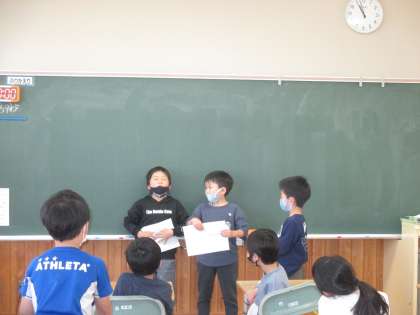 クイズ係が野菜クイズをたくさん出してくれました。生活科で野菜調べをしていることもあり、みんな興味津々でした。