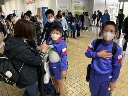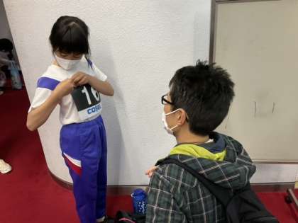 4・5・6年生の代表児童が、チャレンジ・スーパーチビッ子に参加しました。受付を済ませ、競技に向けて準備をしています。