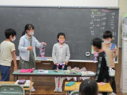 3年生 係活動 公開日 2021/04/30 更新日 2021/04/30 3年生 1学期の係活動のメンバーも決まり、少しずつ活動を始めています。 今日はバースデー係が、4月の誕生者にプレゼントを贈っていました。