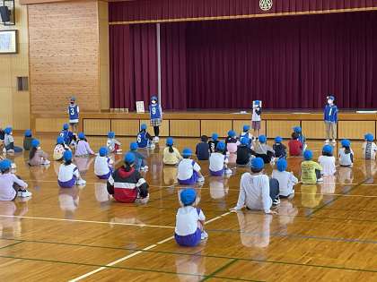 結団式では、団の目当てについて話したり、団活動で大切にしてほしいことを伝えたりしました。