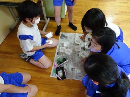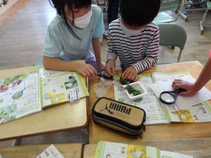 モンシロチョウのよう虫を育てています。 今日は、観察を行いました。 形・色・大きさに注目していました。