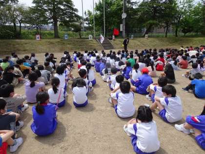 避難訓練がありました。 今日は、グラウンドに避難しました。 真剣に取り組んでいました。