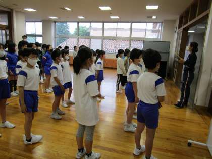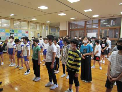 4月から学年の歌として各クラスで歌ってきた「ひまわりの約束」を今日から、広いオープンスペースで松組と竹組合同で歌いました。4年生は、秋に連合音楽会に出演します。今週の木曜日には、外部講師の黒田先生に指導をしていただきます。きれいな歌声を一人一人が響かせられるよう練習を重ねます。
