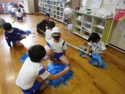また、前回から特に変更をしない団は、棒につけるポンポンを作り直しました。