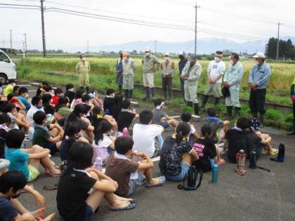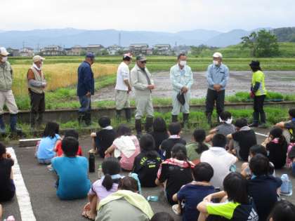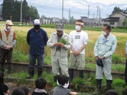 5年生 田植え 1 公開日 2021/05/24 更新日 2021/05/24 5年生 待ちに待った田植え学習を行いました。 地域の方から、苗の植え方を教えていただきました。 真剣な表情で説明を聞いています。