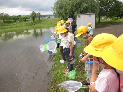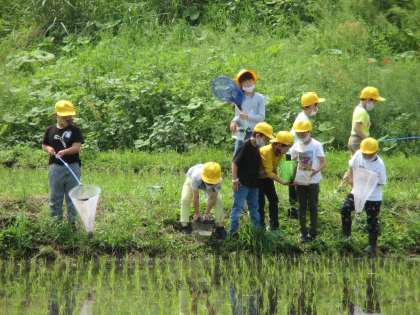 2年生 生活科「生きものとともだち」 公開日 2021/05/25 更新日 2021/05/25 2年生 天候にも恵まれ、子どもたちが楽しみにしていた、生き物探しをしました。おたまじゃくしは、まだ少なかったのですが、アメンボやゲンゴロウ、カエルなどを見付けることができました。