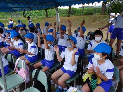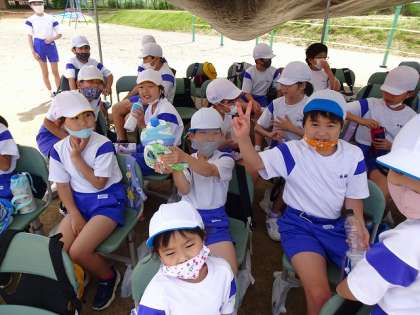 団席の様子です。 競技後は、水分を補給したり、他の学年を応援したりしていました。