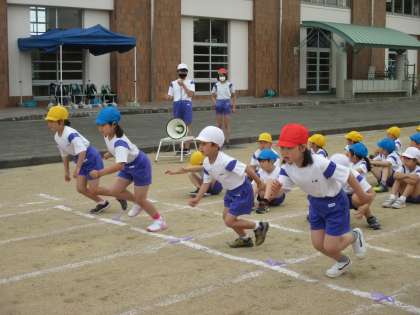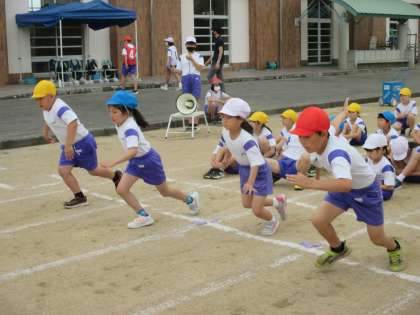 無事晴れて、楽しみにしていた運動会を行うことができました。練習の成果を生かして、70m走と玉入れを頑張りました。