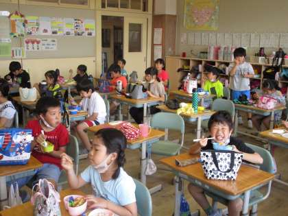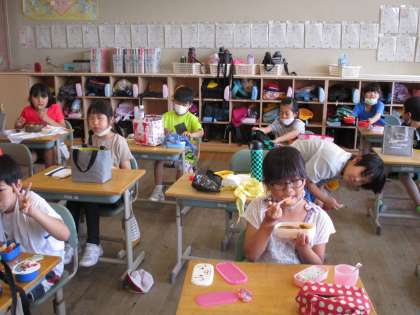 3年生 運動会後 公開日 2021/05/29 更新日 2021/05/29 3年生 運動会終了後、教室に戻り、写真を撮りました。 友達と運動会のことを楽しそうに話していました。 1人1人が思い出に残る運動会になったようです。 昼食の時間では、お弁当を食べました。 とても嬉しそうです。