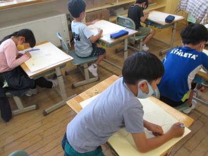 2年生 図工 公開日 2021/06/02 更新日 2021/06/02 2年生 図工の授業では、運動会の競技を思いだして下絵を描きました。自分や友達を描くのに苦戦しながらも集中していました。水彩絵の具で色をつけるのを楽しみにしていました。