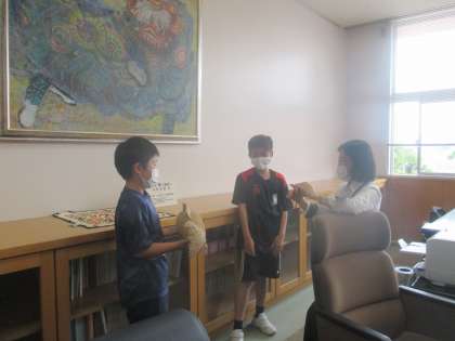 「声に出して読んでみよう 6月」を校長先生に聞いてもらおうと、休み時間には、校長室に直行です。