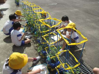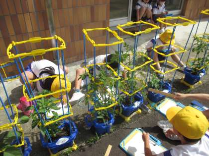 2年生 野菜の観察 公開日 2021/06/03 更新日 2021/06/03 2年生 野菜の生長をじっくりと観察しました。もう大きな実がなっている子どもは、収穫しました。収穫した野菜は持ち帰りますので、ご家庭で食べてみてくださいね。