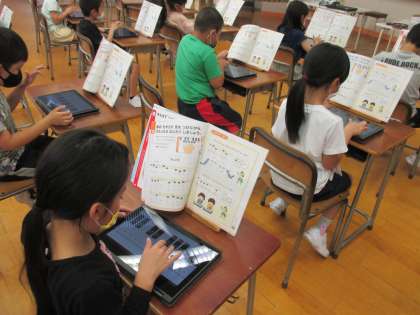 いろいろな国の曲を聞き比べたり、クロームブックを使用して「かっこう」を演奏したりしました。