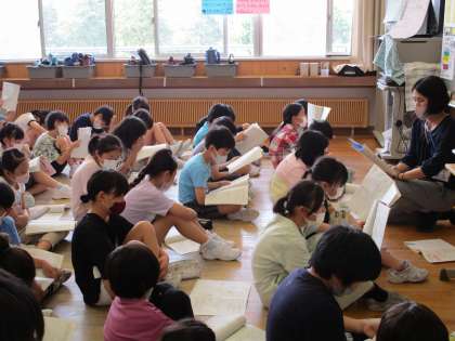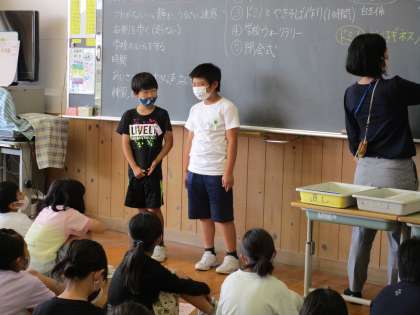 4年生 体験学習会のしおりの説明 公開日 2021/06/10 更新日 2021/06/10 4年生 体験学習会のしおりの説明がありました。当日の流れについて知りました。また、ドミノ・夕食作り・校内ウォークラリーの各チームからのお知らせもありました。ますます、楽しみになってきた子供たちです。