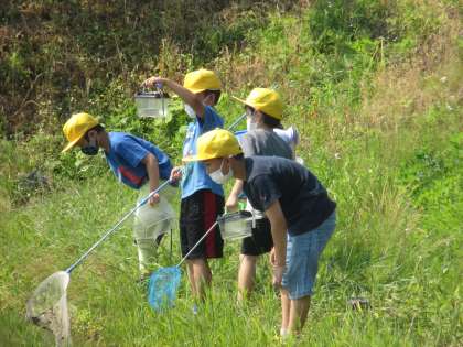 今日は2回目の生き物探しを行いました。前回はあまり見つからなかったオタマジャクシをたくさん捕まえることができ、「足が出ている!」、「前より大きい!」といった声が聞こえました。