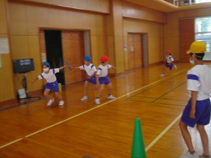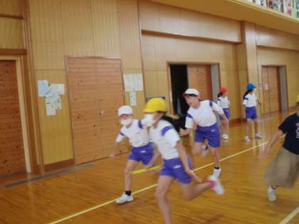 今日は、バトンパスの練習をした後、リレーをしました。 一生懸命走り、力いっぱい応援しました。