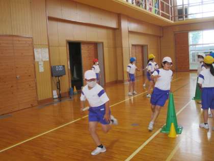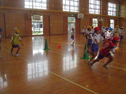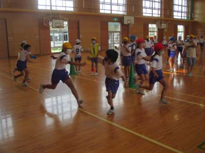 バトンを渡す友達の名前を呼び、バトンを渡します。