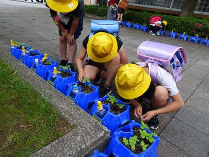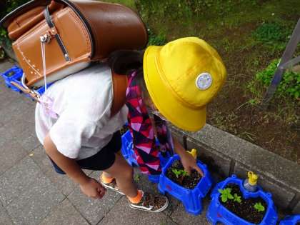 自分の育てている植物の水やりや観察を朝と帰りにしています。 少しずつ成長していることを喜んでいます。