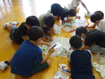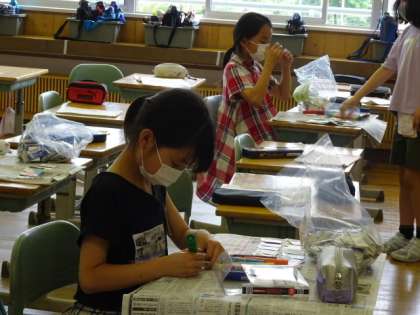 4年生 体験学習会の準備 公開日 2021/06/17 更新日 2021/06/17 4年生 体験学習会の前日準備をしました。 班長は、開閉会式の司会や児童代表の言葉の練習を上手に言えるまで行いました。 ドミノチームは、ドミノに絵を描き、楽しくドミノができるようにしました。 ウォークラリーチームは、ポイントを設置し、置いた場所の写真を撮影しました。 夕食作りチームは、焼きそば・フルーツ白玉作りで使う用具や机、材料を分けたりする準備をしました。 明日が楽しみです。