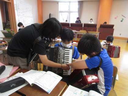 6松の音楽です。自然に友達同士で見合える隊形になったり、ていねいに教え合ったりする子供の姿がすてきでした。
