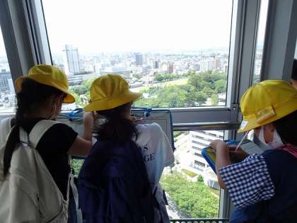 3年生 社会科校外学習3 公開日 2021/06/17 更新日 2021/06/17 3年生 富山市役所展望塔に行きました。 あらゆる方角に目を向け、見えたものをメモしています。 富山城や富山駅、ファボーレも見えました。 「学校の屋上から見える景色と全然違う」と、驚く声が聞こえてきました。
