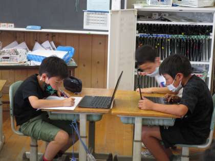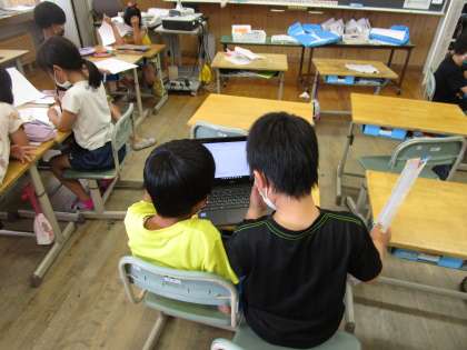3年生 係の時間 公開日 2021/06/21 更新日 2021/06/21 3年生 生き物の飼い方を調べたり、新聞作りのためのアンケートをつくったりと、自分たちの係をよりよいものにしようと、クロームブックを活用しています。