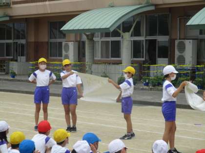 各団、目当ての達成に向けて気持ちを高めています。 (青団・黄団)