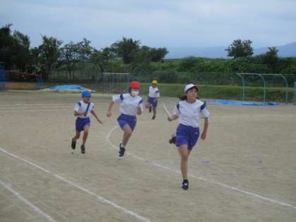 5年生 第1回リレー大会 3 公開日 2021/06/24 更新日 2021/06/24 5年生 優勝を目指して一所懸命走っています。 バトンパスも声を掛け合って、 スムーズにできるようになってきました。 どの団も練習の成果を発揮しています。