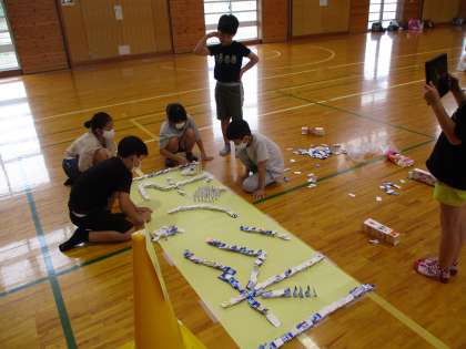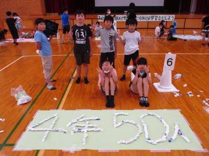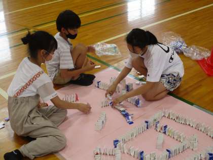 4年生 体験学習会(デザインドミノ) 公開日 2021/06/24 更新日 2023/01/30 4年生 班で決めた字をドミノで作り、みんなで倒しました。班によって作った字が違い、班の個性が表れていました。作って倒した動画を撮影し、他の班にも見てもらいました。