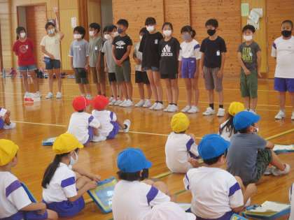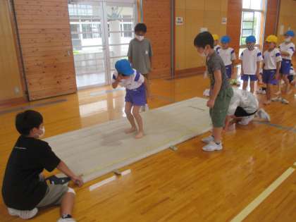 5年生 2年生のお手伝い 松組 公開日 2021/06/25 更新日 2021/06/25 5年生 2年生の体力テストのお手伝いに行きました。 「ここに手をついて」 「そこからジャンプするんだよ」 2年生に伝わるように分かりやすい言葉で話しかける姿は、立派なお兄さんお姉さんでした。