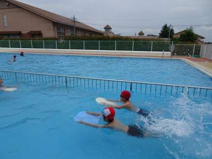 大きい方のプールに、初めて入りました。 自分なりに泳ぐ姿が見られました。