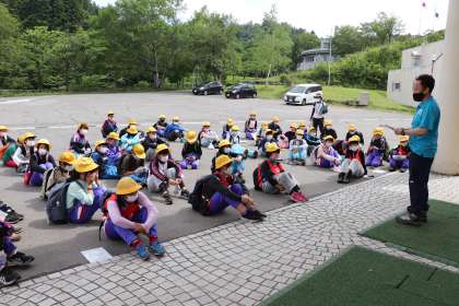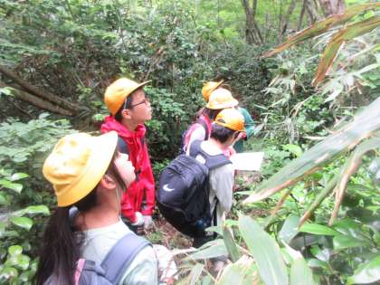 午前中は大日の森へ行きました。山に登ったり、各ポイントを巡ったりして、班の仲間と体を動かしました。