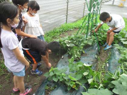 2年生 畑のお世話 公開日 2021/07/12 更新日 2021/07/12 2年生 畑が、ジャングルのようになってきました。晴れ間に、畑の野菜を収穫したり、草むしりをしたりして、進んで畑のお世話に取り組む子供たちです。