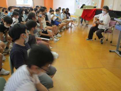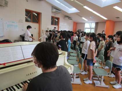 4年生 黒田先生に合唱指導をしていただきました 公開日 2021/07/12 更新日 2021/07/12 4年生 秋に出演する連合音楽会に向けて、黒田先生に来ていただき、合唱の練習をしました。 ただ歌うだけでなく、朗読するように歌うことを教えていただきました。明日から、様子を思い浮かべて歌えるようにがんばります。