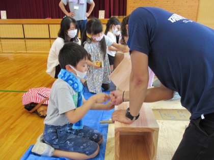 木工体験や手芸体験、配管体験等、様々な体験が準備されており、参加した子供たちは楽しそうに取り組んでいました。それぞれのコーナーの担当の方に丁寧に教えていただき、素敵な作品がたくさんできあがりました。