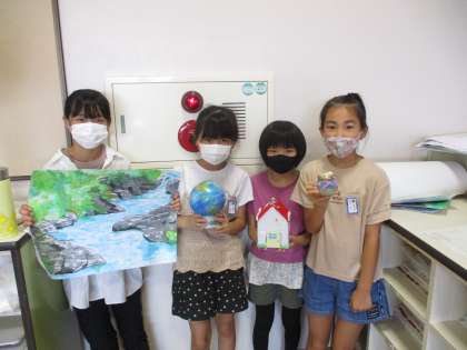夏休みにそれぞれ取り組んだ課題を互いに見せ合いました。力の入った成果を見て「すごい」「もっと見せて」とお互いのがんばりを認めいました。