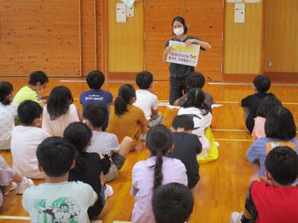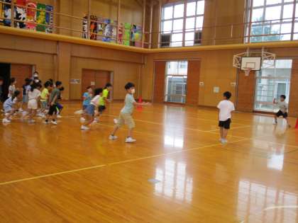 4年生 学年集会 公開日 2021/08/31 更新日 2021/08/31 4年生 4年生全員で体育館に集まって、学年集会をしました。2学期の目標は、「たがいのよさを見つけ、認め合おう」です。その後、みんなで久しぶりにドッジボールをしました。ボールを速いスピードで投げたり、その速いボールに当たらないように逃げたりと白熱し、笑顔いっぱいでした。仲良く取り組んだり、友達と声をかけ合ったりして認め合う姿も見られ、2学期の成長が楽しみです。
