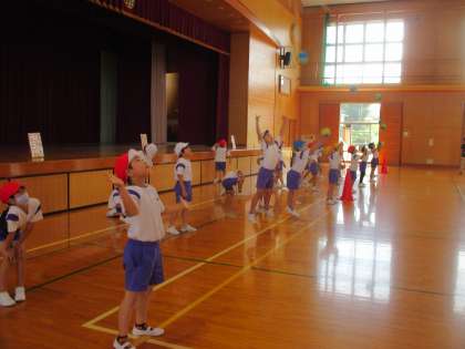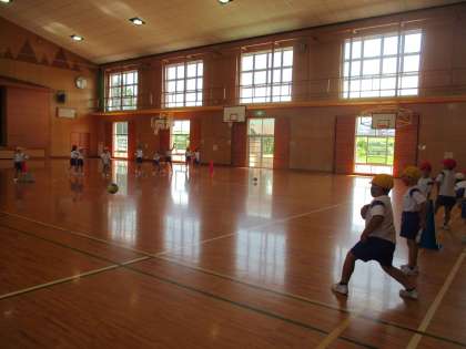 2学期初めての体育では、ボールを使った様々な動きに挑戦しました。真上に高く投げ上げたり、バウンドさせてキャッチしたりしました。「高くなげられた!」「強くバウンドさせないと届かない。」という声があり、楽しんで取り組んでいました。