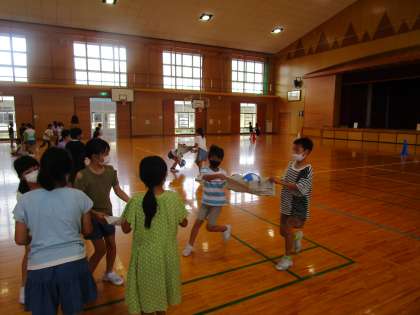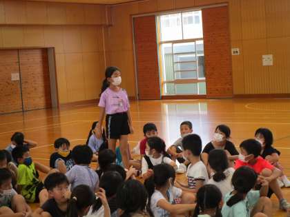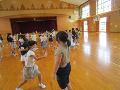 3年 ミニ集会スタート 公開日 2021/08/31 更新日 2021/08/31 3年生 今学期から、各クラス輪番制で週に一回ミニ集会を開くことにしました。 今日は説明もかねて先生が司会を務め、進化じゃんけんとボール運びレースを楽しみました。 どんな集会にしていくか、各クラスで考えていきましょう。