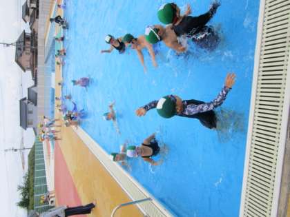 1年生 今年度最後の水泳学習 公開日 2021/08/31 更新日 2021/08/31 1年生 気持ちの良い晴れ間に、プールに入ることができました。 みんなでプール内を一方向に歩いて流れを作ると「勝手に流れてくよ」「後ろ向きに歩けないよ」と楽しげな声が響いていました。 流れを楽しんだ後には、それぞれの練習の成果を確かめました。夏休み中に練習に取り組んだ子は、かなりレベルアップしていて、満足げな笑顔を浮かべていました。 来年も、さらにできることが増えるように、頑張りましょうね。