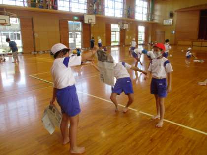 今回はみんなで動物や新聞紙になりきって、お互いに動きを見せ合いながら、楽しく自分の思いを表現しました。