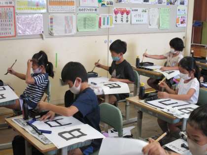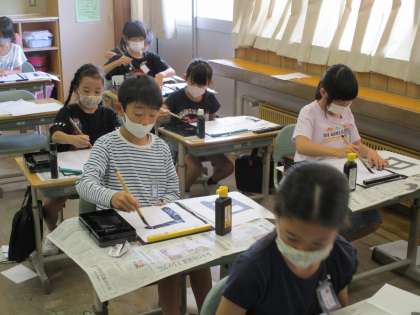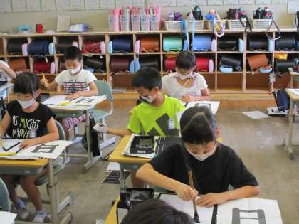 2学期初めての習字です。 久しぶりの筆の感覚を楽しみました。